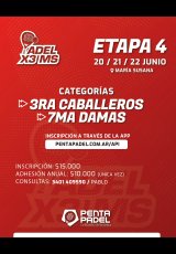 »» Evento: 7MA DAM - 3RA CAB / 20-21-22 JUNIO / PADEL X3 M.S / ETAPA 4 »» Localidad: María Susana »» Fechas: 20/06/2025 al 22/06/2025