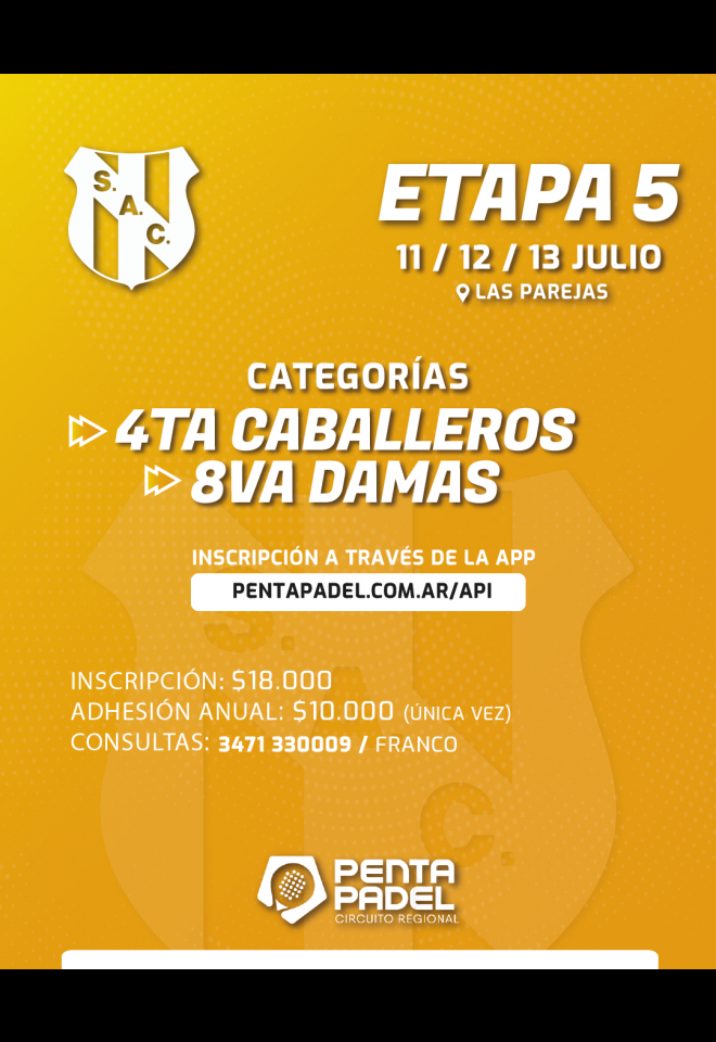 »» Evento: 4TA CAB - 8VA DAM / 11-12-13 DE JULIO / SPORTIVO LAS PAREJAS »» Localidad: Las Parejas »» Fechas: 10/07/2025 al 13/07/2025