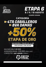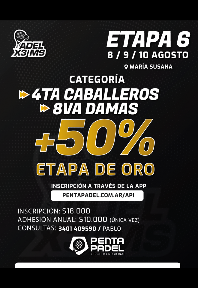 »» Evento: 4TA CAB - 8VA DAM / 8-9-10 AGOSTO / PADEL X3 / ETAPA DE ORO »» Localidad: María Susana »» Fechas: 08/08/2025 al 10/08/2025