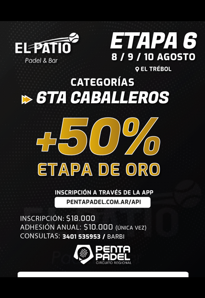 »» Evento: 6TA CAB / 8-9-10 AGOSTO / PATIO PADEL / ETAPA DE ORO »» Localidad: El Trébol »» Fechas: 08/08/2025 al 11/08/2025