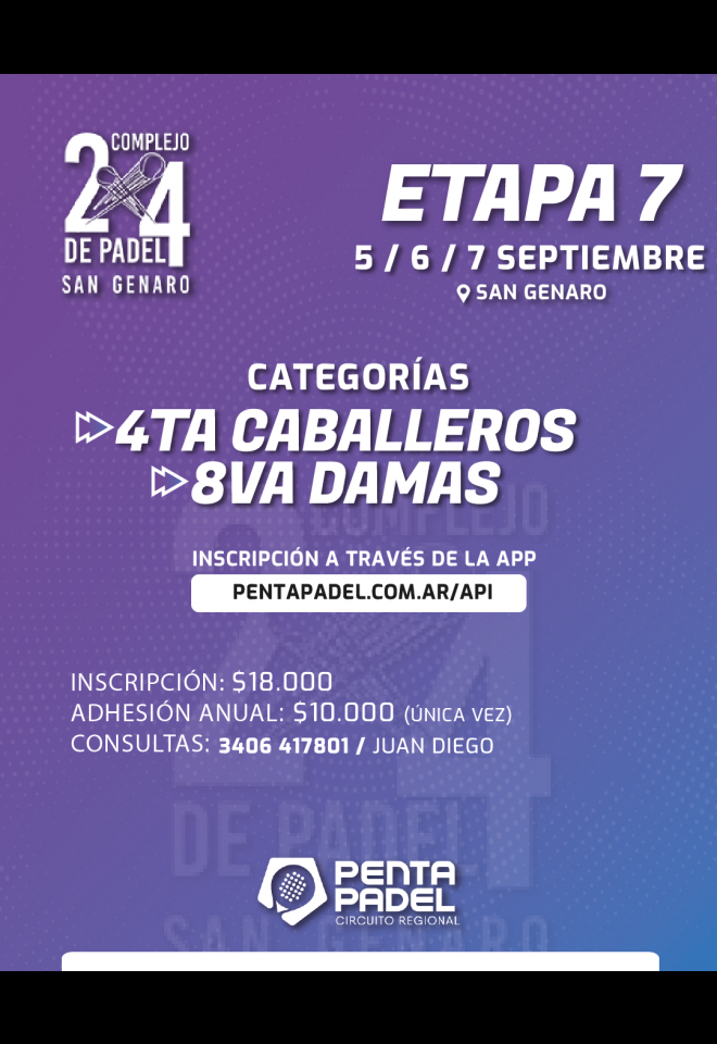 »» Evento: 4TA CAB / 8VA DAM / 5-6-7- SEPTIEMBRE / ETAPA 7 / COMPLEJO 2X4 »» Localidad: San Genaro »» Fechas: 05/09/2025 al 07/09/2025