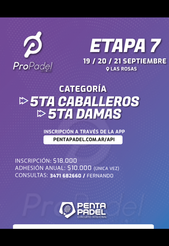 »» Evento: 5TA CAB - 5TA DAM 17 19-20-21 SEPTIEMBRE / ETAPA 7 / PRO PADEL »» Localidad: Las Rosas »» Fechas: 18/09/2025 al 21/09/2025