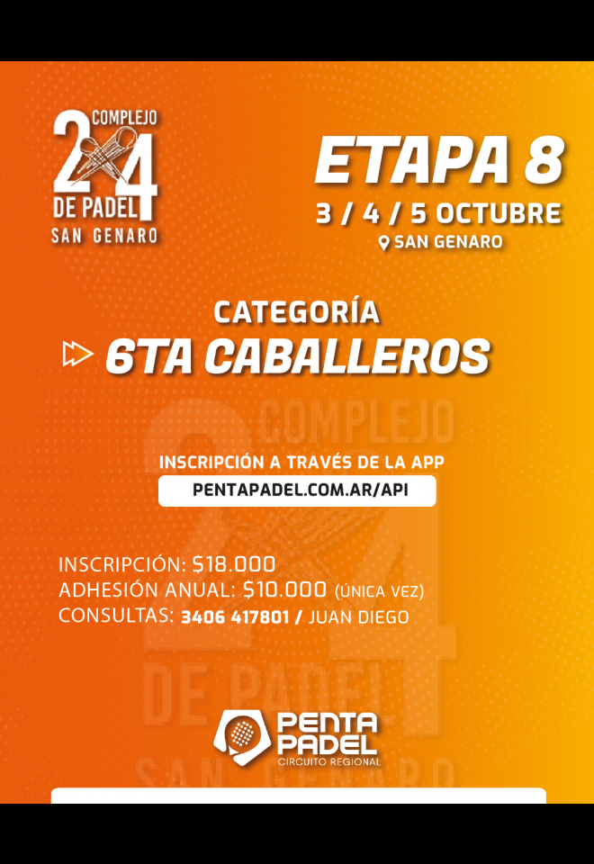»» Evento: 6TA CAB / 3, 4 Y 5 DE OCTUBRE / COMPLEJO 2X4 / ETAPA 8 »» Localidad: San Genaro »» Fechas: 03/10/2025 al 05/10/2025